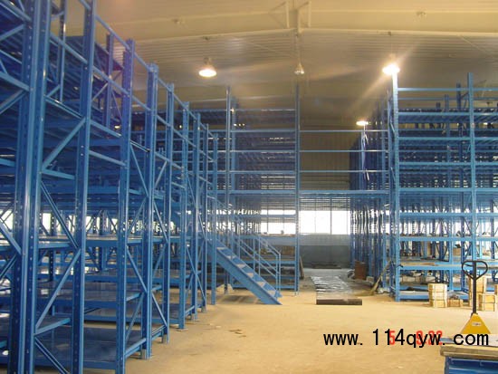 閣樓式貨架是用貨架做樓面支撐,可設計成多層樓層(通常2-3層)。設置有樓梯、扶欄和升降機等。適用于庫房較高,貨物較小,人工存取,儲物量大的情況。樓面支撐貨架品種規格齊全,閣樓樓面有平板、花紋板、鋼鉻板,木板種類.