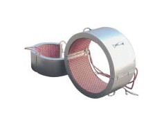 以履帶式加熱器做熱源,配以保溫材料及外殼,做成圍型對開式加熱器,便于裝拆,適用于小型管道的局部加熱。最高工作溫度750℃。
