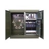 | YBM預裝式變電站(歐式箱變)是將高壓開關設備、配電變壓器和低壓配電裝置三個不同的隔室內,通過電纜或母線來實現電氣連接,所有高低壓配電裝置及變壓器均為常規的定型產品。智能型預裝式變電站系列可將高壓開關設備(RM6或GA開關配電動遠程自動控制裝置)、變壓器、低壓配電設備、低壓智能開關,無功自動補償,按一定接線方案組合一體,使其具有就地或遠程操作達到遙控、遙測、遙計、遙調等功能。適用于額定電壓為12KV及以下,額定頻率為50HZ三相交流系統,容量在1000KVA及以下的公共配電網,環網和終端供電的住宅小區、廠礦企業、大型工地、高層建筑、機場碼頭及臨時性設施等使用。 |