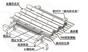 | 金屬仿古連體筒瓦屬于新式瓦,具有中國傳統風,是傳統瓦變革的產物。在古建筑、仿古屋面改造、景區屋面改造、大型博物館、寺廟屋面等項目上的使用。產品顏色多樣,瓦型多樣,加大了客戶的選擇空間,金屬仿古瓦經得起考驗,具有很高的實用性,金屬仿古連體筒瓦是一種采用鋁鎂錳 、鋼板作為原材料制作出來的瓦片。采用暗扣式安裝固定,整個屋面無一顆螺絲外漏或穿透,杜絕了漏水隱患。 |