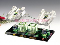 本廠生產的多功能水晶話筒架(水晶麥克風架)上面可放麥克風,手機,煙盒,牙簽,紙巾等。上面可雕刻與彩印,做上公司單位LOGO與賀詞。